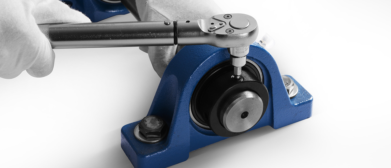 用扭矩扳手按規(guī)定的鎖緊扭矩將軸承座的安裝螺栓擰緊。